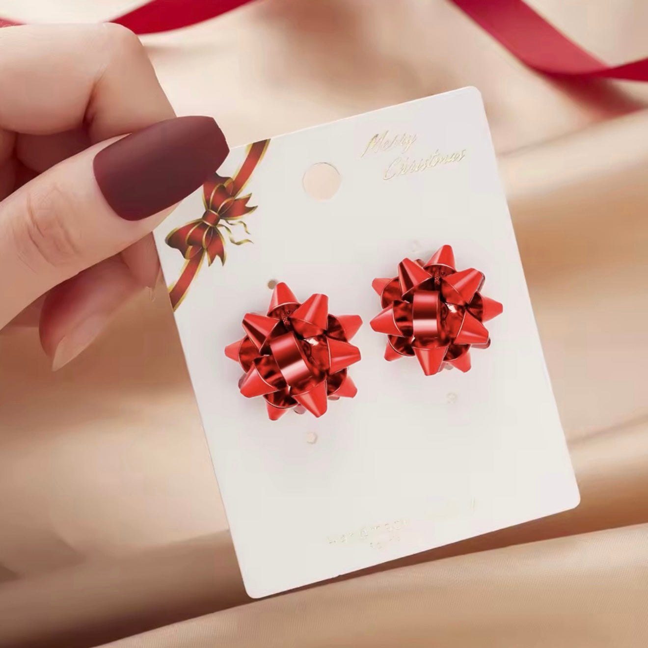 Aretes de moño rojo